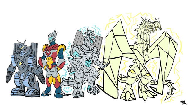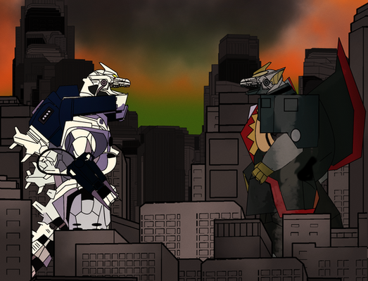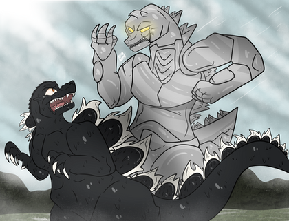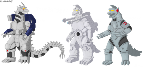 It's funny how many ways the main MechaGodzilla depictions end up balancing out. Two evil against heroic Godzillas vs two defensive MechaGodzillas against destructive Godzillas, two on the 50 meter scale, two on the 100+ meter scale, two with useless non-tails and two with very articulated tails. Two I can draw somewhat ok and two I really struggle with.