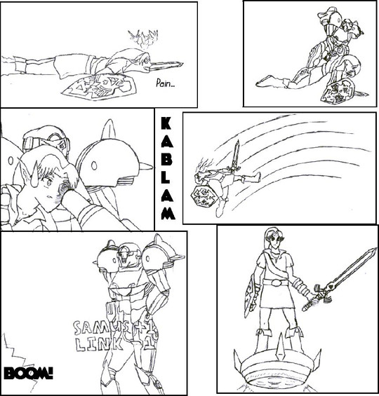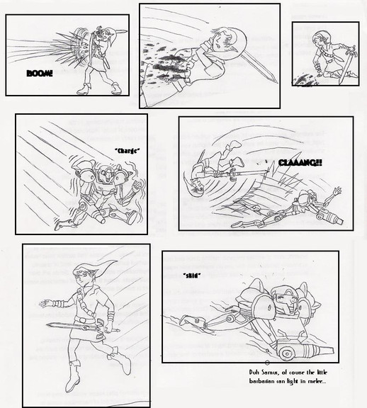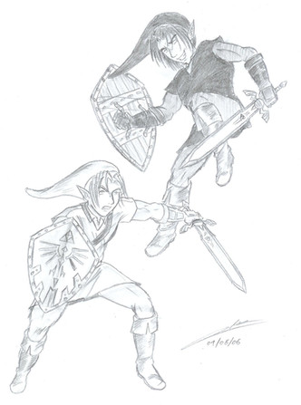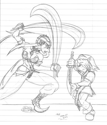 Never even played the game actually, I just thought it would be a cool context to draw action with. Link I've played as a lot, and Talim has my favorite character design in that game.Had a friend say that this should have the subtitle "Talim: AAAARGGH! LINK FOR THE LOVE OF GOD PUT ON SOME PANTS!!!"