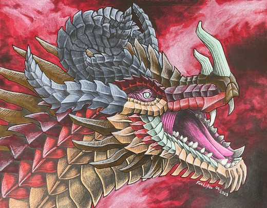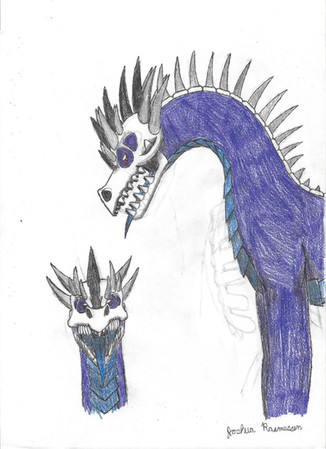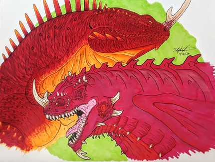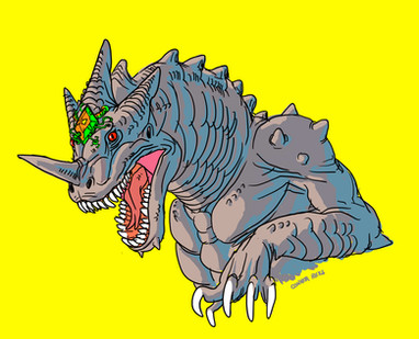 I've never been as active in following fan kaiju stuff as I wanted to be, was always kind of pulled in too many directions to give it the focus I feel it deserves. I've been wanting to go through people's stuff and maybe draw some of the fan kaiju out there, which I think I'll get to start being more full time soon, but for now I thought about which ones did I see a lot? I already covered Tyrantis a few times since he's got a couple novels out now and curiously I find it a lot easier to read a narrative that way than a bunch of bios online. So I thought of a few and settled on Irokus, though looking at the page now it looks like hasn't been active for some time. I think I messed up the upper front of the skull a bit too.