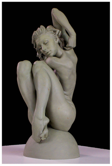 This piece is really magnificent! The lines and gesture, how it flows, and the little details, it's so realistic, and the style gives the whole sculpture a very nice touch/uniqueness/feel. It's so expressive. And I really like the knees