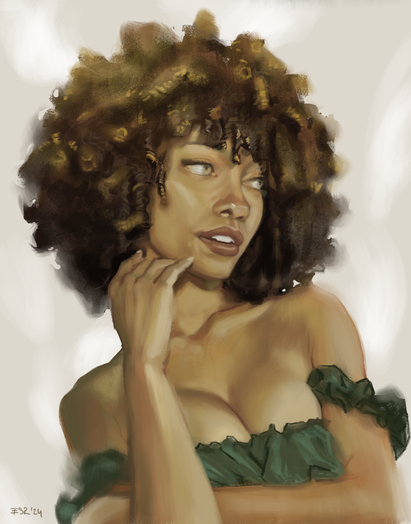 #blackgirl #digitalpainting #howtodraw #photoshoptutorial #portrait #portraitpainting #sketching #tutorial #artprocess #curlyhairedgirl #greeeneyedgirl #notaigenerated