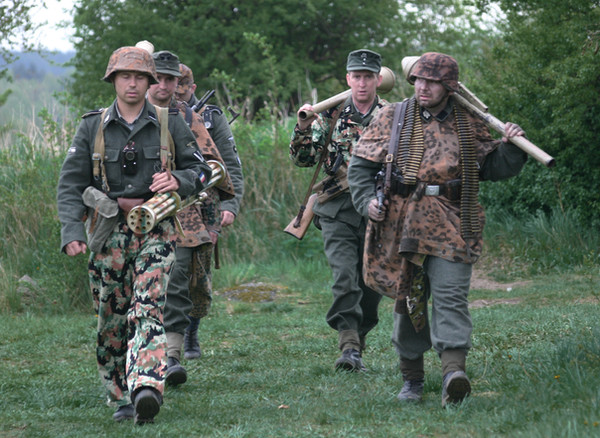 Co trzyma niemiecki żołnierz z prawej? Co to za broń?