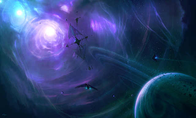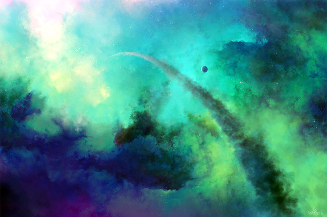 #asteroids #blue #colorful #erik #green #kire #light #nebula #painting #planets #shoemaker #space #stars #suns #yellow #xkire #art #schumacher