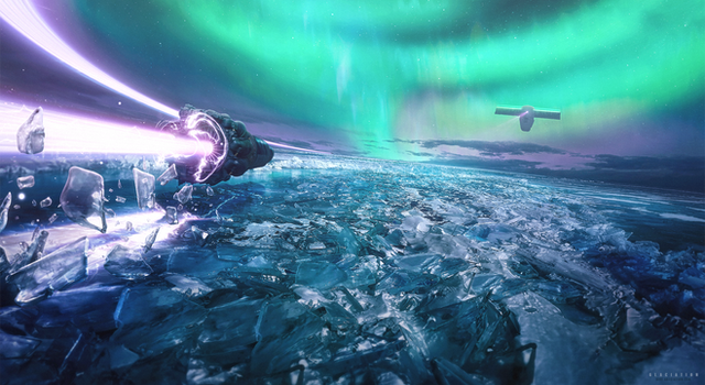 I like the atmosphere; the vast emptiness, the subtle colour palette, and the engaging composition of the two craft as they draw you in... A lovely piece and well deserving of a DD!