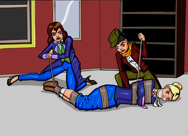 A scene from 's story "Sara at the Races" starring his great girl detective character Sara Philips. (I'm posting the cleave gagged version in my gallery this time because it is the "official version")gag variants and blindfolds in my scrapbook