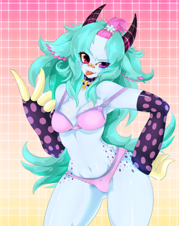 #alien #beast #blueskin #creature #creepy #girl #goth #harlot #kawaii #lewd #monster #monstergirl #pastel #pinkhair #underwear #lacebug #cynicalpancake
