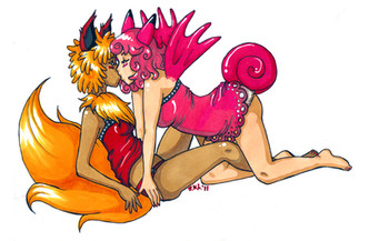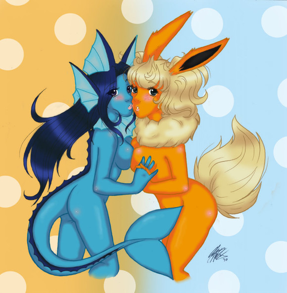 #anime #anthro #eevee #eeveelutions #gijinka #jolteon #love #pokemon #vaporeon #yuri #pokejinka #eevolotions