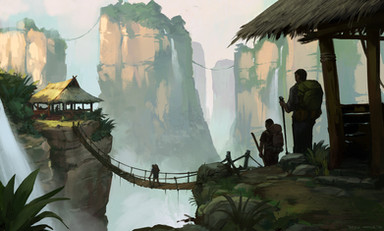 It reminds me of the old book covers before they started to use photomanipulations. Great use of light and creating lines for composition. The little details really enhance the overall picture as well.
