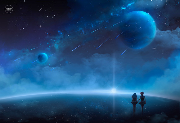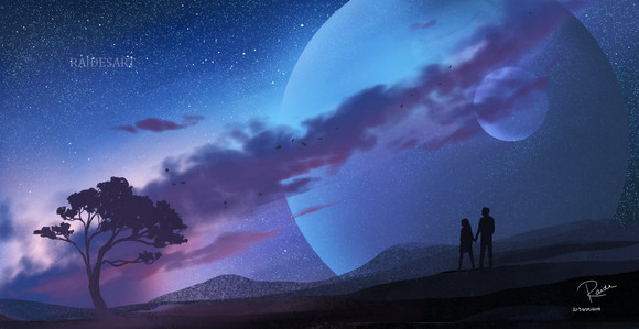 Wow, this is absolutely gorgeous! I love the idea and the huge moon *_* The colours are absolutely gorgeous as well! It feels so peaceful yet romantic.