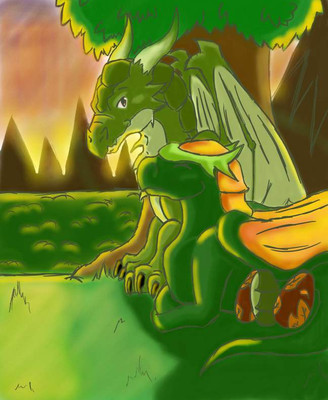 In piccy is rusCSI's oc Sandra and me, Lilac as dragon