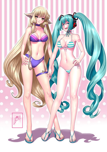 Commission for Miku Hatsune and Chii from Chobits, the pose and clothes specified by him.Related content