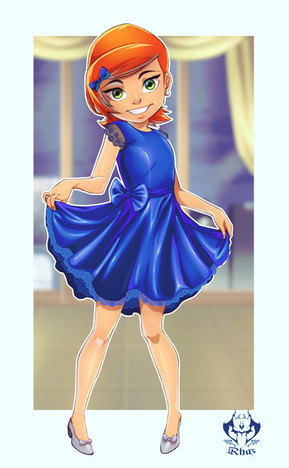 I love how you drew her cute pose, and delightful body proportions (especially her thigh), her cute happy expression, and the details on her freckles. Spectacular coloring of her outfit, hair, and eyes, as well as the background. Great job!