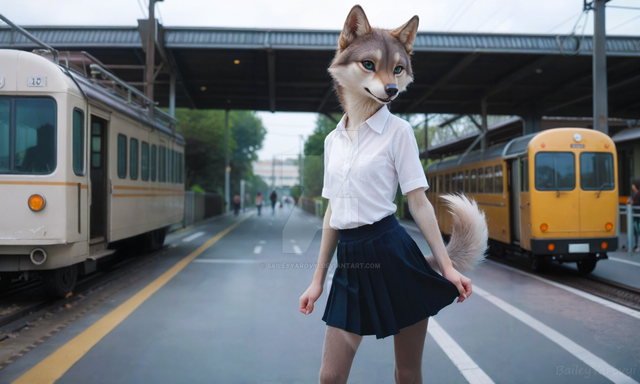 #anthro #crop #denim #fashion #flirtatious #furry #metro #public #seductive #skirt #squirrel #subway #transport #urban #top