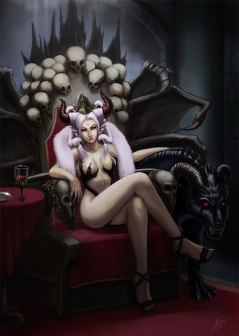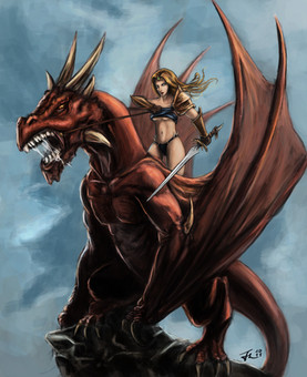 That dragons back must really chafe her with so little clothes on.