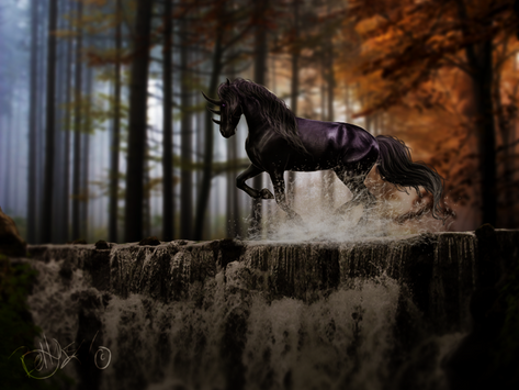 This was an order on HL, and one which I'm quite proud of - the brief was to have a horse in a blizzard, but to have him fighting against it. I added the lamp in the background to symbolise hope and a will to fight. Hopefully I met the brief and I hope you love it, Nat!