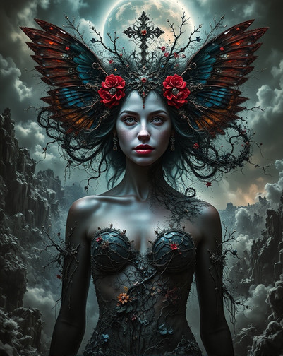 #abstract #butterfly #dark #dreamlike #dreamy #earrings #elegant #ethereal #fantasy #female #figure #goddess #monarch #mystical #mythical #power #queen #radiant #realism #regal #surreal #surrealism #symbolic #symbolism #transformation #vibrant #vivid #winged #art