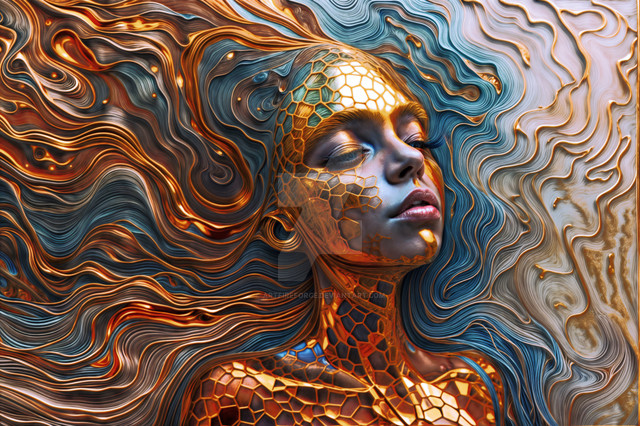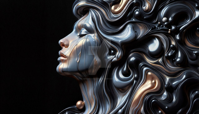 #abstract #artwork #chrome #conceptual #contemporary #design #dynamics #effects #face #figure #gold #golden #liquid #manipulation #material #metal #metallic #metamorphosis #modern #portrait #rendering #sculpture #surreal #surrealism #transformation #art