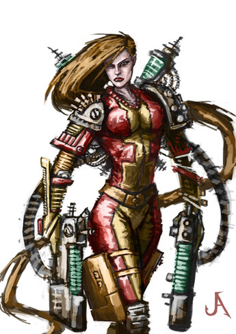 A proud and determined woman, Pi can trace her ancestry back to the Viking raiders of old. As a space fighter test pilot, she developed nerves of steel and reflexes the equal of any veteran gladiator. She died when her experimental Valkyrie interceptor plunged into the icy surface of Europa. Generations later, scientists recovered the frozen remains of her corpse and reanimated it, replacing the mangled flesh and crushed organs with cybronic implants. If she was deadly before, she's almost unstoppable now.