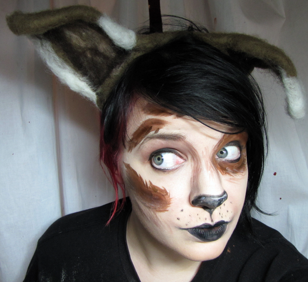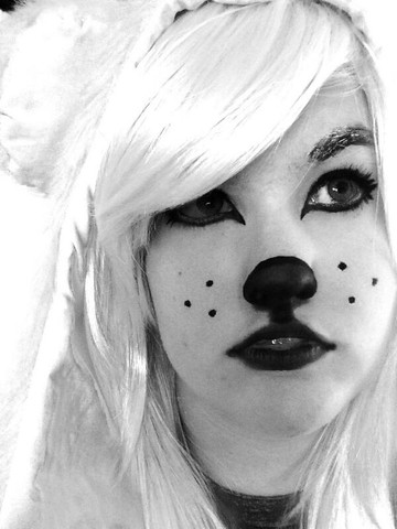They're just white dog ears that flop down, and feature six black dots all together. Super cute ears, I'd say<3