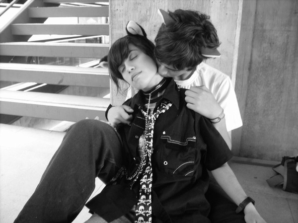 A really old picture of me and my boyfriend, Kaleb. This was the first ever picture we had of us. Its still my favorite by far:3It was super cute because he asked me to sit on his lap and someone was all "I'ma take a picture of you guys!"