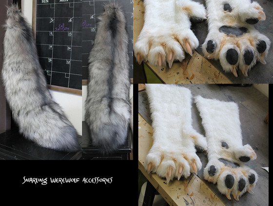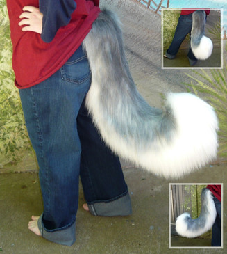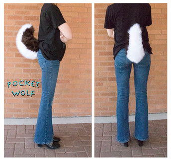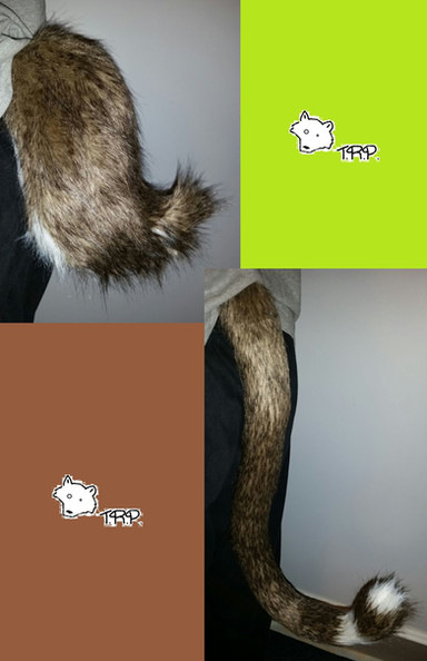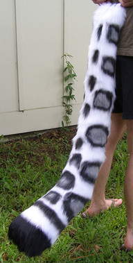 The tail features hand sewn in spots, nylon belt loops, and light stuffing. This is also one of my large canine tail patterns. The spots are the older LS Amber fur from Fabric.com