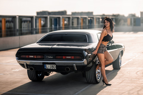 I love the Dodge Challenger any year model. Nice ride and so's the girl.