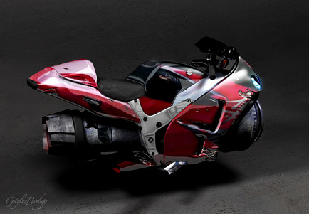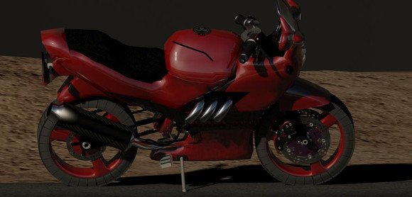 that's a nice render, and the bike's model is excellent. a very original shape, combining a small city cruiser with a big racing machine.