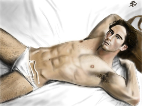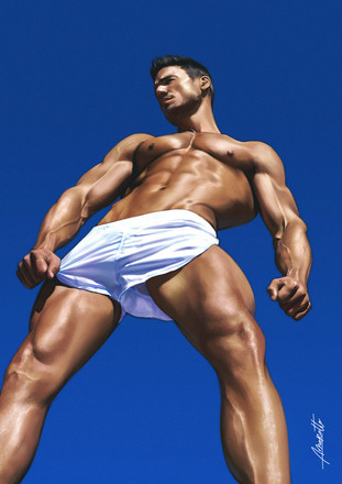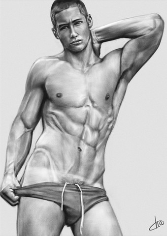 So, this is my third digital painting and I must admit I had a blast doing it. It was so much easier to do this one since I am becoming familiar with more brushes and blending modes in Photoshop (as opposed to blurring every single stroke as before). After painting my Femme Fatale [link] I wanted to do a male counterpart, so I worked for about 4 to 5 days on this new piece. Like before, I wanted to give emphasis on the anatomy and I think it shows. Hope you all like it.-------------------------------------------------------------