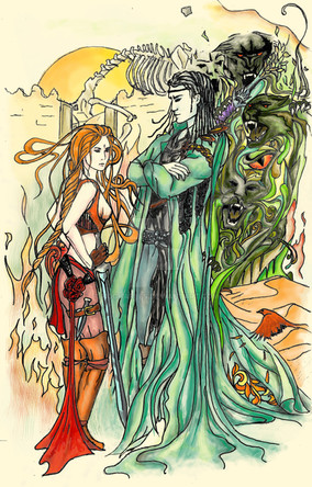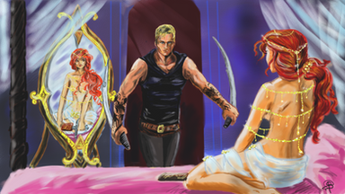 So... it´s finally done! This piece took me way more than I expected... about a week on and off. After my first 3 paintings I thought it was time for something a bit more challenging and decided to create a painting with more than one character and have them interacting. The inspiration came from a painting I fell in love with because of its color and tried to copy it´s color palette.