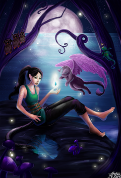 Ok, since I started getting comfortable with painting in photoshop my sister has been insisting me on making a portrait of her and her kids and I finally came across an idea to put this together. The result is this piece which I named "Magic" not only for itΒ΄s theme but because both my nephew and my niece have this magic that turns me into one of them every time they are around---------------------------------------------