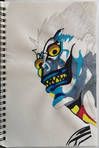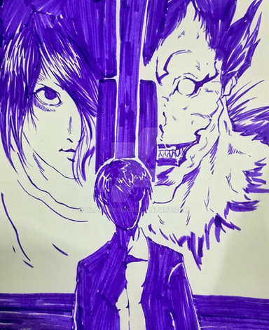 Death Note is a drawing of the manga, anime series, Death Note. It is done in color with markers; It is a physical drawing, it is not digital.INSTAGRAM: www.instagram.com/esban_art/