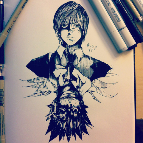 Death Note is a drawing of the manga, anime series, Death Note. It is done in color with markers; It is a physical drawing, it is not digital.INSTAGRAM: www.instagram.com/esban_art/