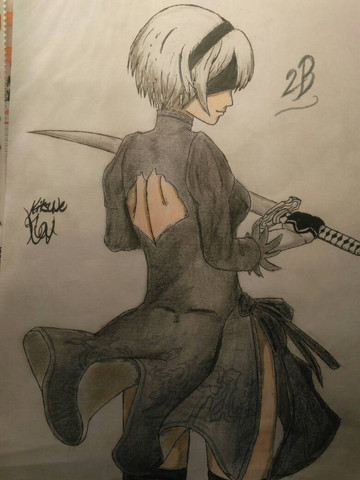 Finish of 2B from Nier: Automata.. Had to simplify her dress pattern a lot, did the best I could with it.