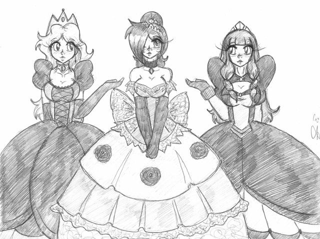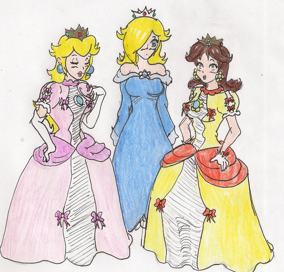 The one dead-center of the picture looks a lot like Princess Zelda to me, and the one right next to her (to her right, so left of her from our perspective.... Between her and the one whose dress is partially hidden) reminds me of Princess Peach. Don't know if that was intentional or not, but it's interesting.