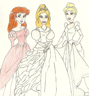 4 Princesses. Not shaded in so if anyone wants to try and color this..hint hint.I feel reasonably confident with my new pencil now. Time to go back to "Sleep over"