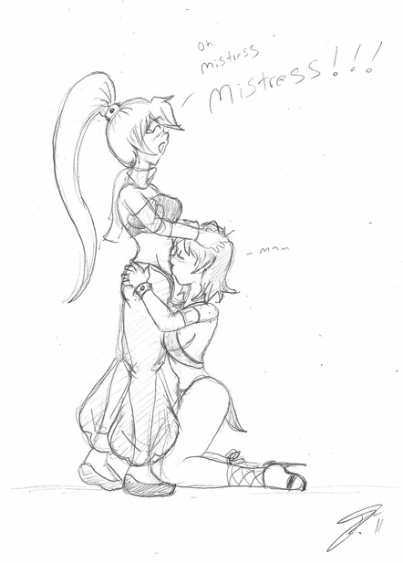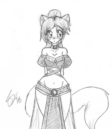The Demon Sword of Wind Aria from The Sacred Blacksmith.Some of you may remember I used her for inspiration for Rena's harem costume in "Playing for Keeps"