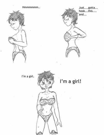 Wow. He sure does look like a sexy girl. Whats next? He has to put a costume over that one?