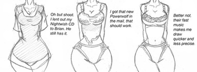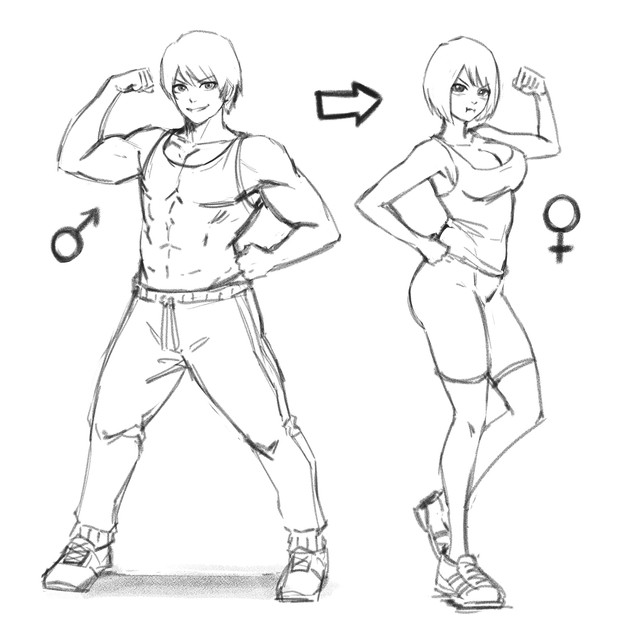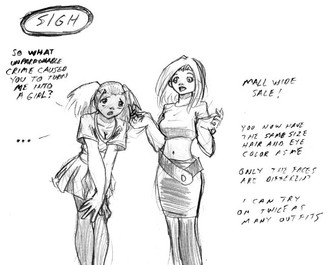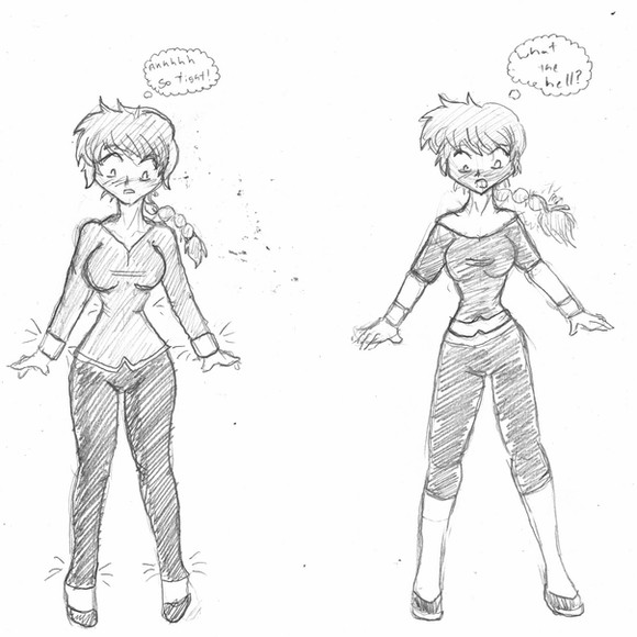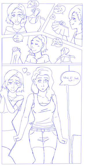 A girl convinces her boyfriend to crossplay at an anime con. This is just an idea I've been kicking around, and some basic sketches for it. Would anyone like to see this fully fleshed out and expanded? Let me know.Related content