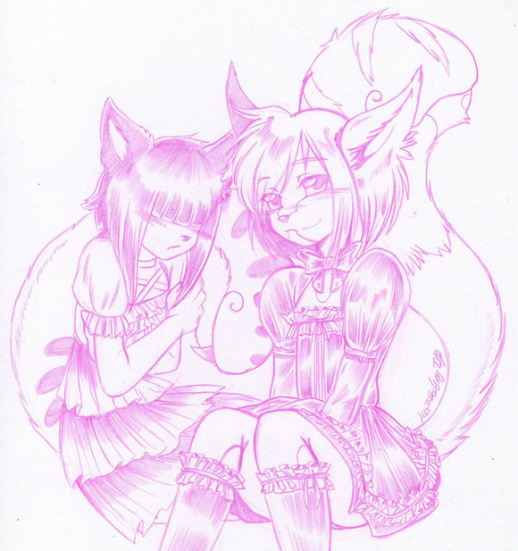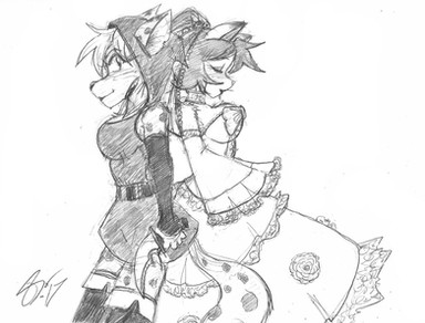 Lunchtime sketch from yesterday, finished this morning.More furry gothic lolita goodness: