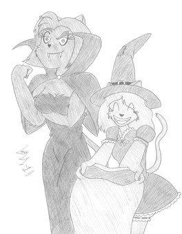 #anime #corset #cute #furry #girl #magic #sexy #witch #yuri #catgirl #familiar #halloween #lesbian #miniskirt #elbowgloves #familiarwitch