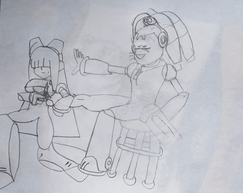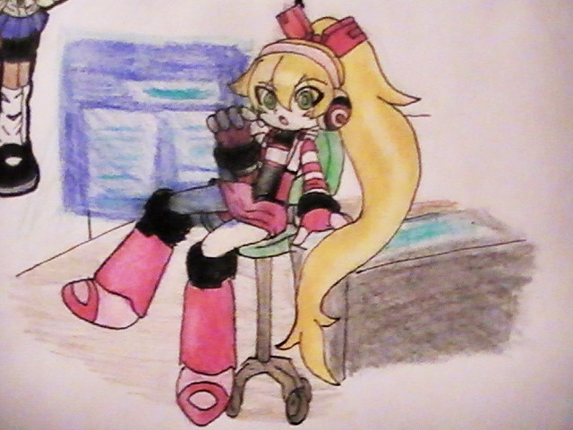After a migraine like I had, then the nausea, and the lack of sleep, i was looking for some Autobot support! Ratchet sure looks happy to help, guess the twins haven't been around to piss him off yet! Hehehe, He so cute with his lil' clipboard and stethoscope Hehehe, I'm chibi! I just noticed, if someone were to look at this pic real quick, my striped shirt and water bottle/ice pak almost looks french, like a beret XD I must be tired