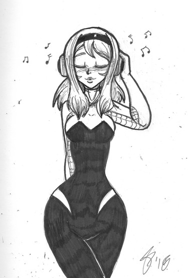 This sketch seems unfinished.... no, wait, she just becoming invisible.