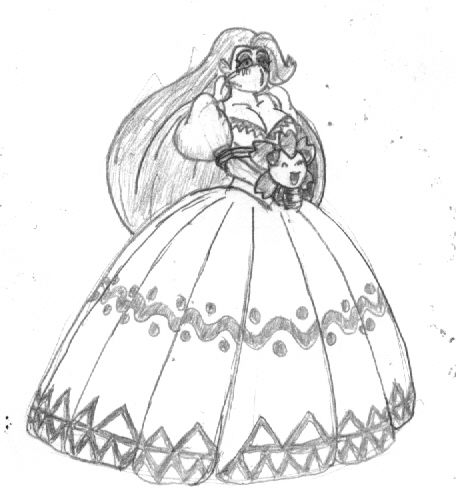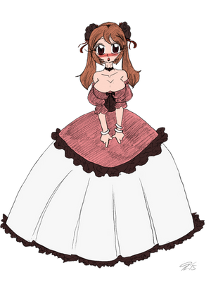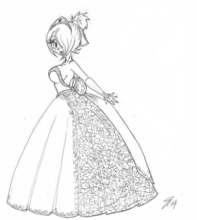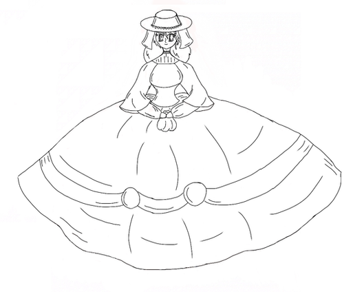 Now *that's* a poofy gown. Very nice layers, ruffles lace and edging. Also nice way to referencing Allen's male clothes.