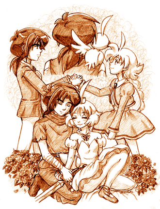 Lyndis from the Fire Emblem game series, flanked by Eliwood and Hector.My breaktime sketch for this week.