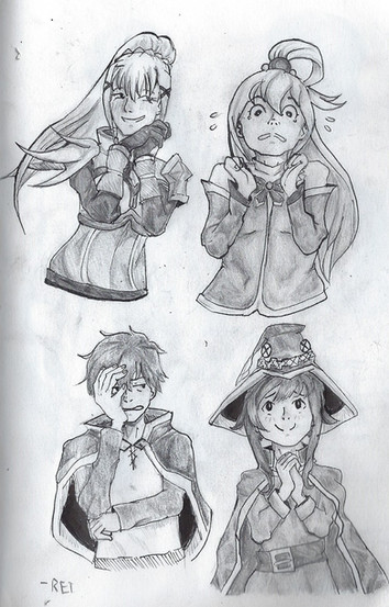 I'm busy with Patreon stuff for the next couple of days, so in the meantime I'll upload some stuff that never made it on here.First up: Megumin, with Aqua and Darkness. completing my Konosuba tryptic.