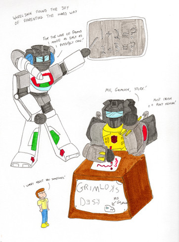 I keep imagining that Perceptor is standing in front of Annabelle's math class from the movie verse, like when she's six or something and they had to bring something for show and tell and she brought Percy... Man that would be a funny fic...