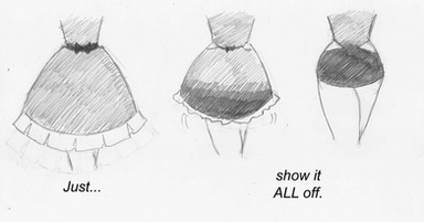 Apparently, ladies with big butts suffer that exact frustration; dresses and skirts always look shorter in the back.