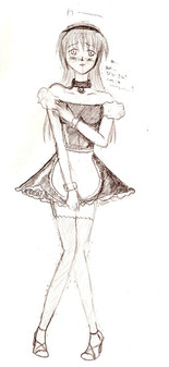 The first version of "Tighter!" www.deviantart.com/escafa/art/… where I didn't put her in lingerie. Well actually she was going to be wearing a different kind of corset and a slip, but they ended up looking more and more like a dress, so after scanning and only then realizing my mistake I erased and put more defined lingerie instead. Also I fixed some drawing issues.But enjoy the look at what was.