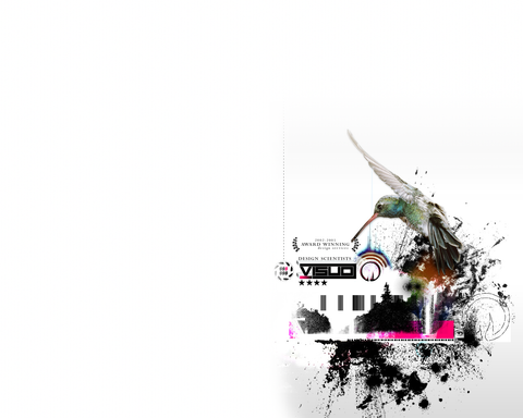 i like the hummingbird. how did you make this? the splotches of black was that some sort of brush in photoshop or illustrator? i like how you used the beak of the hummingbird as a guideline to point to the important information, the visuo text. i like how you used the various colors in other elements of the composition. like the hints of pink under the V and to the left of it. also the green of the hummingbird and how there is some green under that orange brown blob. this is very neat