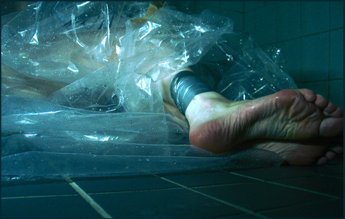My eyes were drawn to your wrists for some strange reason. The fact they are also "bound" is a statement as well ... not only is the subject denied sight and air, but the arms are also restrained. That's an interesting thought for someone who used their hands to make art.
